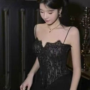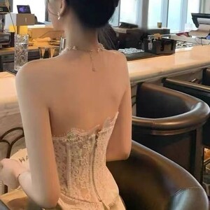 新品1960#轻奢吊带蕾丝鱼骨抹胸吊带后背拉链设计肩带可拆卸