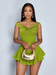 688 时尚分体裙套装 气质修身裹胸一字肩露肚脐上衣和高腰短裤裙