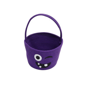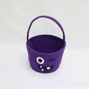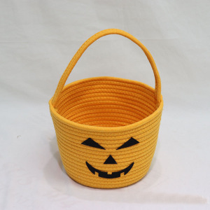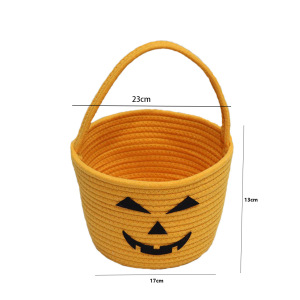 跨境儿童万圣节礼品篮手提南瓜桶道具篮棉绳收纳筐糖果桶玩具收纳
