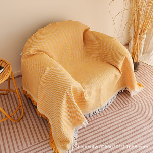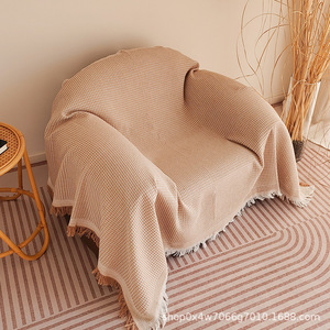 素色单人沙发巾盖布美式乡村简约一片式沙发盖毯防尘全包沙发套罩