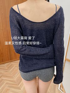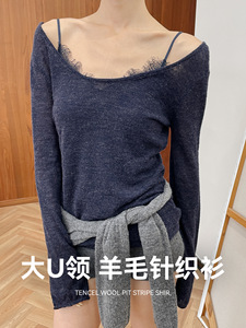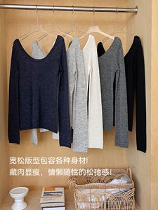 秋冬大U领羊毛针织衫女修身显瘦打底衫保暖外穿内搭长袖套头上衣