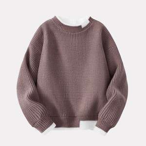 男童毛衣2025新款秋冬款男孩上衣蓝色假两件打底衫儿童针织毛线衣