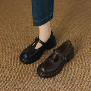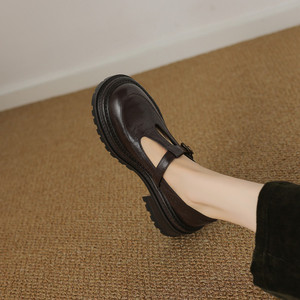 厚底英伦小皮鞋女复古一字带粗跟圆头一脚蹬乐福鞋浅口玛丽珍单鞋