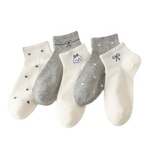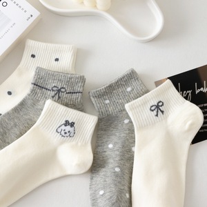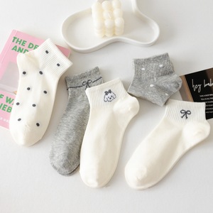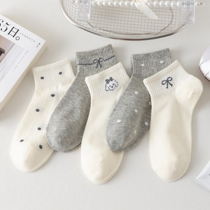 灰色卡通小狗波点袜子女短袜棉袜ins潮蝴蝶结运动风浅口白色船袜