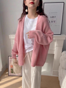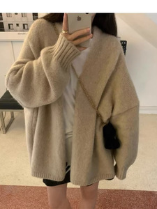 韩系软糯针织开衫女外穿秋冬季高级感宽松慵懒风中长款毛衣厚外套