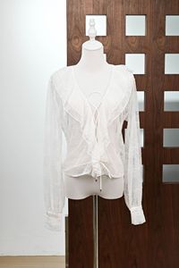 迷情法意 白色蕾丝上衣女夏薄款宽松长袖荷叶领系带衬衫+短裙