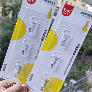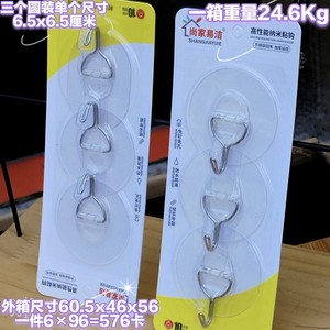 批发3个装强力无痕粘钩免打孔挂钩厨房浴室门后墙壁透明挂衣钩