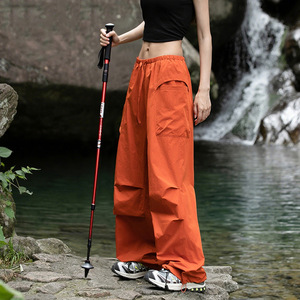 超好看速干冲锋裤女夏季薄款户外徒步防晒登山裤橙色运动工装裤子