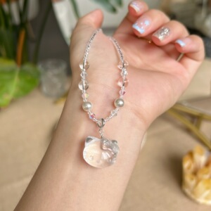 天然水晶猫项链猫白水晶项链精致透体小众可调节扣头项链