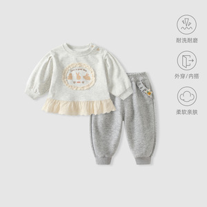 婴儿套装秋季女宝宝卡通休闲分体两件套女童秋装洋气长裤外套上衣