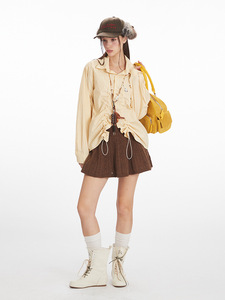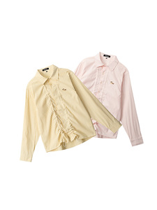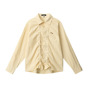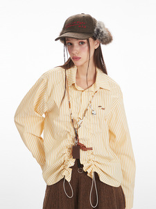 HeyHenry 美式抽褶条纹长袖衬衫女2025新款秋季设计感百搭上衣