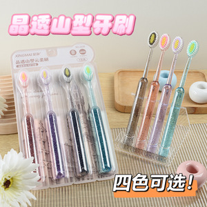 新款高档水晶牙刷山型凸面深层清洁护龈家用旅行软毛牙刷
