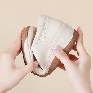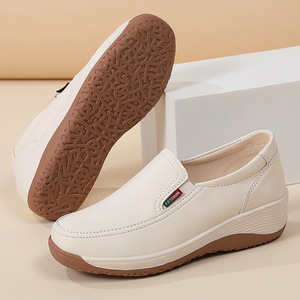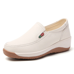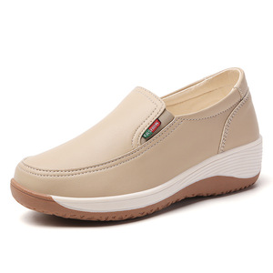 秋季新款女软底休闲松糕跟女鞋厚底乐福鞋妈妈款小皮鞋坡跟单鞋
