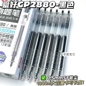 爱好GP2880超大容量刷题笔ST笔尖中性笔0.5按动笔学生黑色考试笔