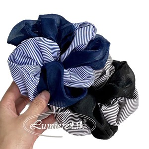 韩国东大门新款学院风时尚小众蓝条纹双圈设计头绳气质扎马尾发圈