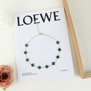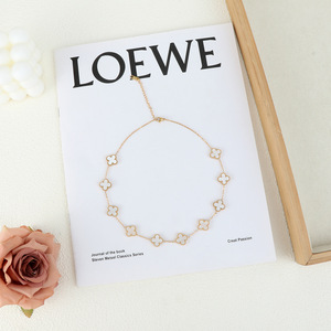 跨境爆款简约四叶草双面吊坠不锈钢镀18K金女生锁骨项链时尚饰品