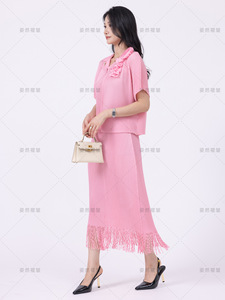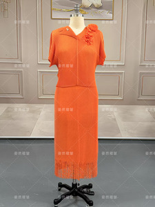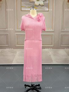气质女装高级感度假风连衣裙三宅一生褶皱时尚大码两件套百褶长裙