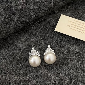 A-611银色镶锆珍珠耳钉