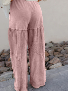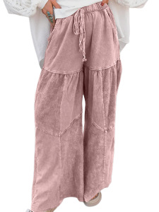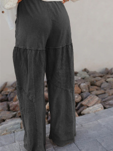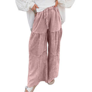 2025年夏季新款纯色直筒长裤女欧美复古百搭抽绳高腰宽松休闲裤女