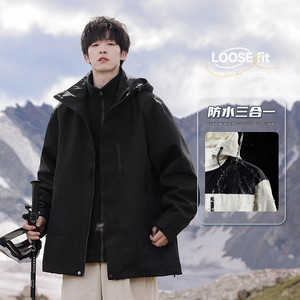 NASA三合一冲锋外套男士春秋季新款防风衣男款户外防泼水连帽夹克