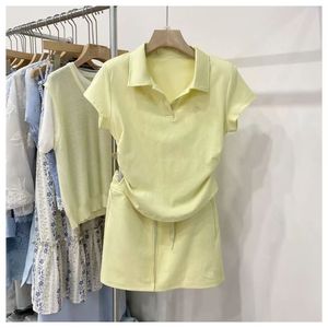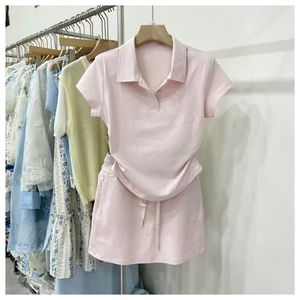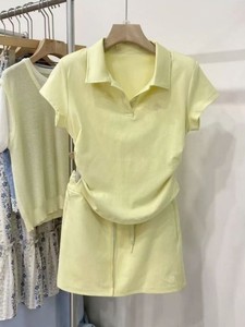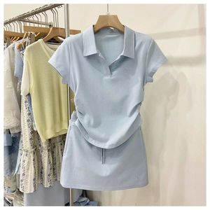 巨好看的夏日套装女搭配小个子设计感POLO领收腰短袖半身裙两件套