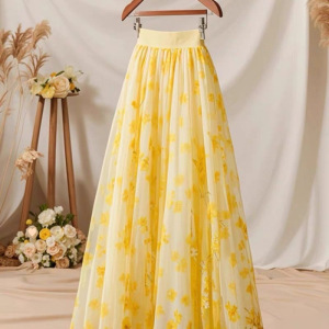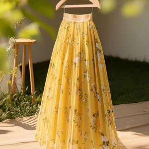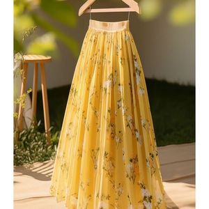 今年流行爆款新款小个子垂坠感好看高腰黄色碎花半身裙子女春季