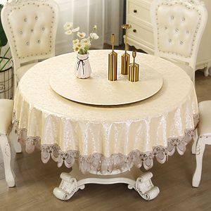 圆桌布防水防烫防油免洗家用圆形餐桌桌垫转盘套蕾丝花边桌布