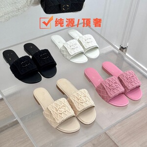 25 夏の新スタイル本革織りフラットスリッパ、小さな香り、ファッショナブルで多用途なインターネットセレブの女性用シンプルサンダル