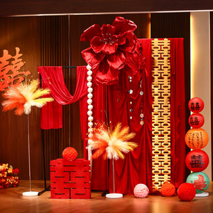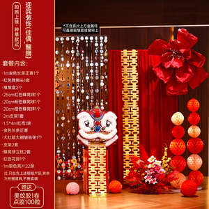 結婚式の装飾ライオンウェイクアップ結婚式の部屋レイアウトセット結婚式の男性と女性の新しい家の寝室の中国のトレンディな獅子舞ラテアート背景壁