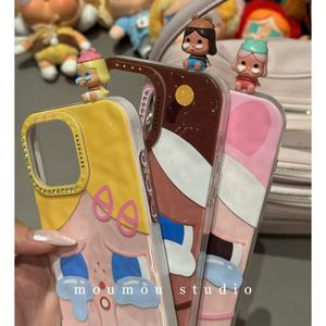 iPhone16promax Apple 15 携帯電話ケース 14 立体 13 に適した輝くダイヤモンドレンズフレームのかわいい泣いている赤ちゃんの表情