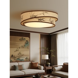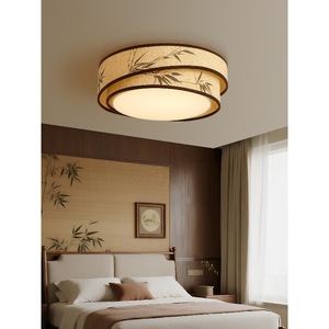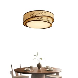 宋代美学麻布绘画竹叶圆形吸顶灯超亮LED主灯大灯客厅餐厅卧室灯