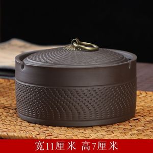 蓋付き紫砂灰皿、飛散防止灰皿、中型セラミック、リビングルーム、オフィス、煙消火器、レトロなホームアクセサリー