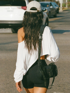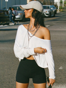 欧美街头辣妹风斜领宽松不规则下摆T恤慵懒风设计感露脐针织上衣