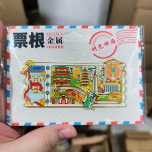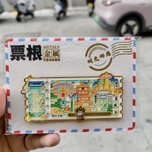 磁吸滑动金属票根文创冰箱贴城市景区纪念品地标旅游特色纪念品