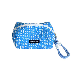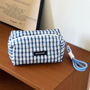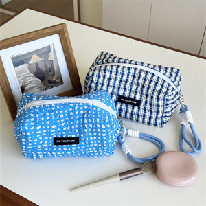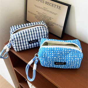 小清新新款湖蓝色ins风格纹化妆包便携旅行收纳袋大容量质感笔袋