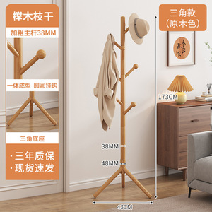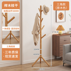 【升级防掉挂钩-加粗榉木】原木色三脚款