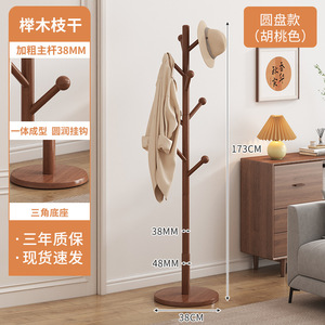 实木衣架落地卧室挂衣架家用木质衣帽架租房用简易立式客厅挂衣杆
