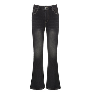 美式街头风低腰显瘦工装口袋牛仔微喇裤辣妹提臀显腿长休闲长裤