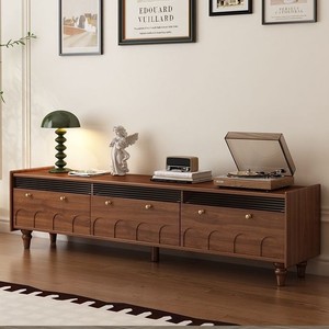 中古风电视柜客厅落地一体美式电视柜收纳柜复古烤漆全实木电视柜