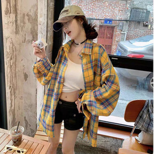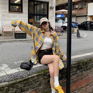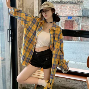 法式黄色格子衬衫衬衣外套女秋季2025年新爆款小个子长袖防晒上衣
