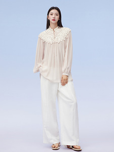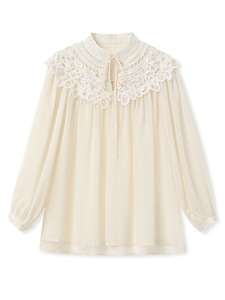 早秋温柔千金风高级衬衫女国潮新款水溶蕾丝云肩设计感上衣 N7039