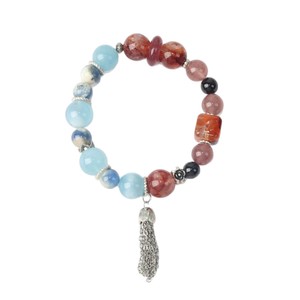 レトロなマルチカラーパールアクアマリンストロベリークリスタルブレスレットファッショナブルなパーソナライズされたタッセルブレスレットニッチ文学スタイルのブレスレット