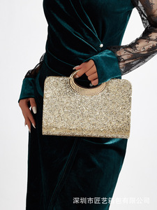 跨境新款晚宴包欧美复古大圆环手拎包高级时尚手拿包包包女高级感