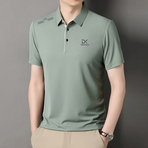 中年男士翻领T恤短袖宽松透气修身时尚印花T恤爸爸装上衣男装新款