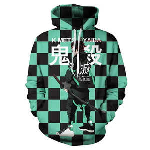 跨境现货日漫鬼灭之刃3d印花卫衣男士欧美带帽宽松版套头3D数码