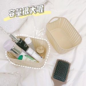 仿藤编收纳筐零食玩具杂物整理篮子手提衣物储物篮塑料桌面收纳篮
