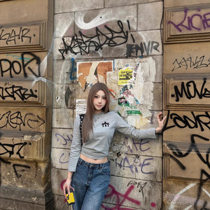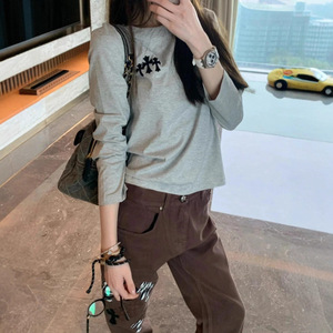 ch 七分袖T恤 植绒字母半袖女25早秋7月新款四季百搭时尚百搭上衣