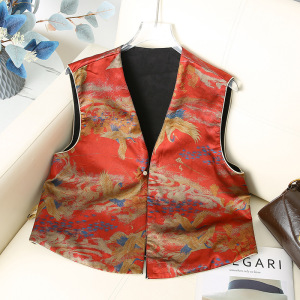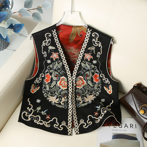 中式民族马甲背心2025复古开衫双面新款双穿重工刺绣国风提花外套