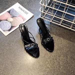 欧美风细带心形水钻露趾高跟鞋2025年夏季新款圆头交叉带细跟拖鞋