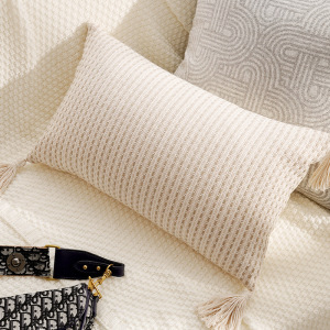 灰色扁扣暗纹流苏长方30x50cm单独枕套